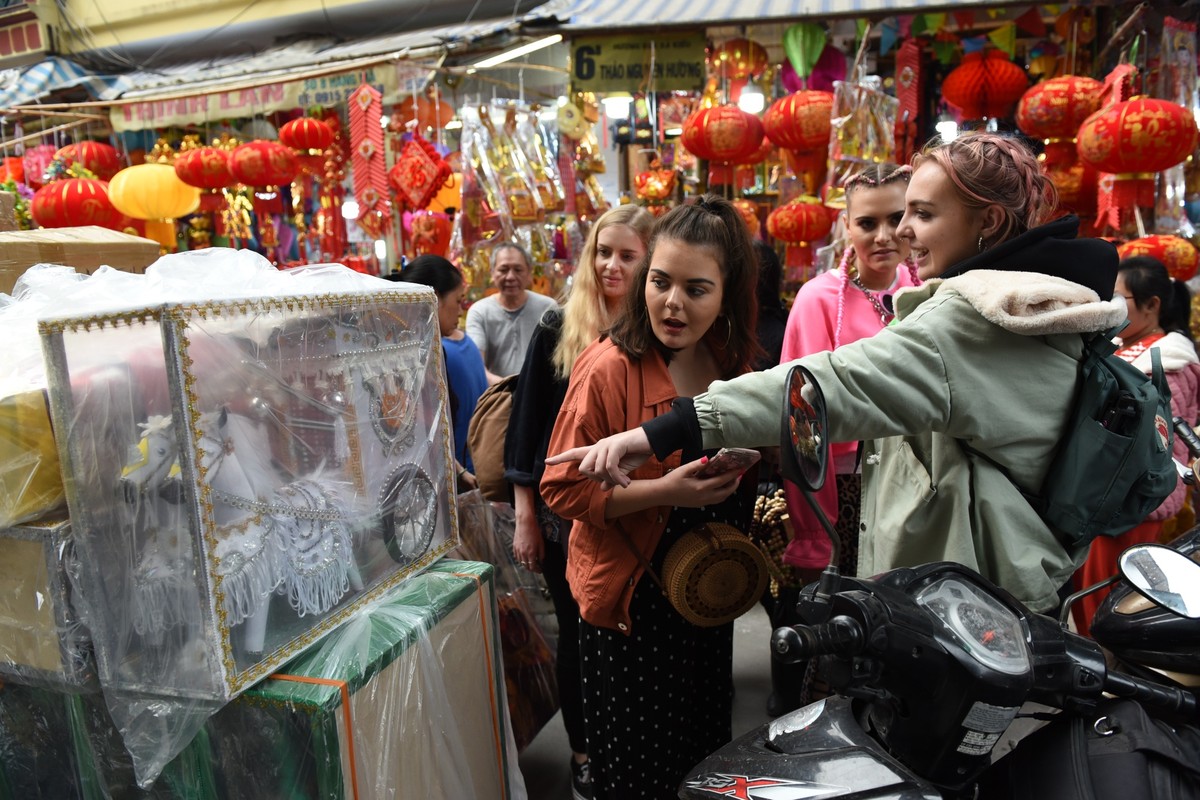 Khách du lịch phương Tây thích thú khi thấy các loại vàng mã đặc biệt.
