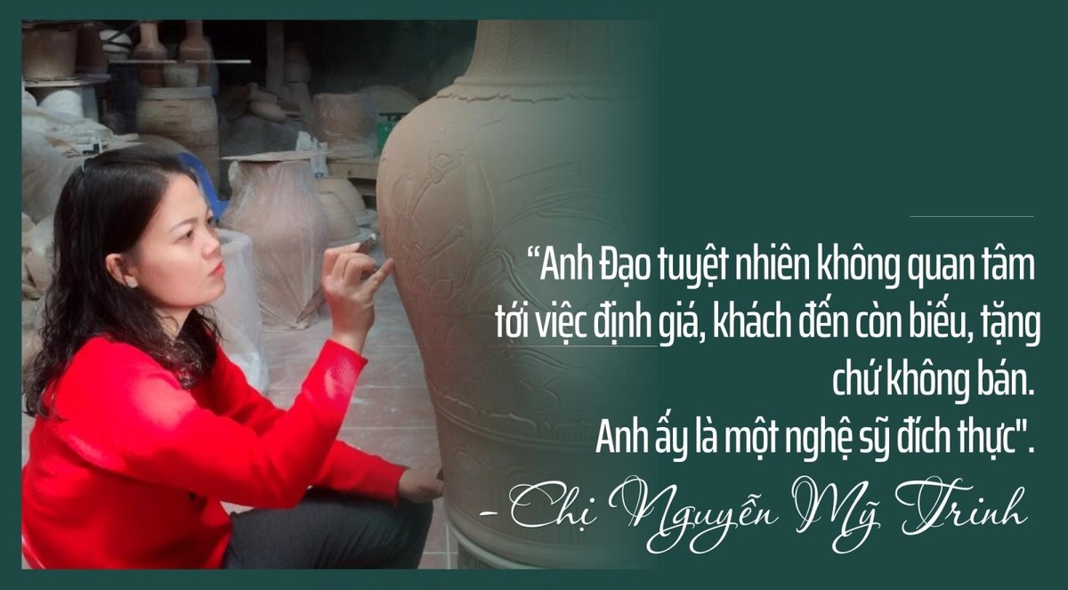 Anh bảo: “Tôi chỉ thích ngả bàn xoay và thỏa sức sáng tạo với đất, chứ không muốn máy móc làm thay”. Cũng bởi thế, trong vòng xoáy cơ chế thị trường, Đạo trở thành của hiếm ở làng Bát Tràng.