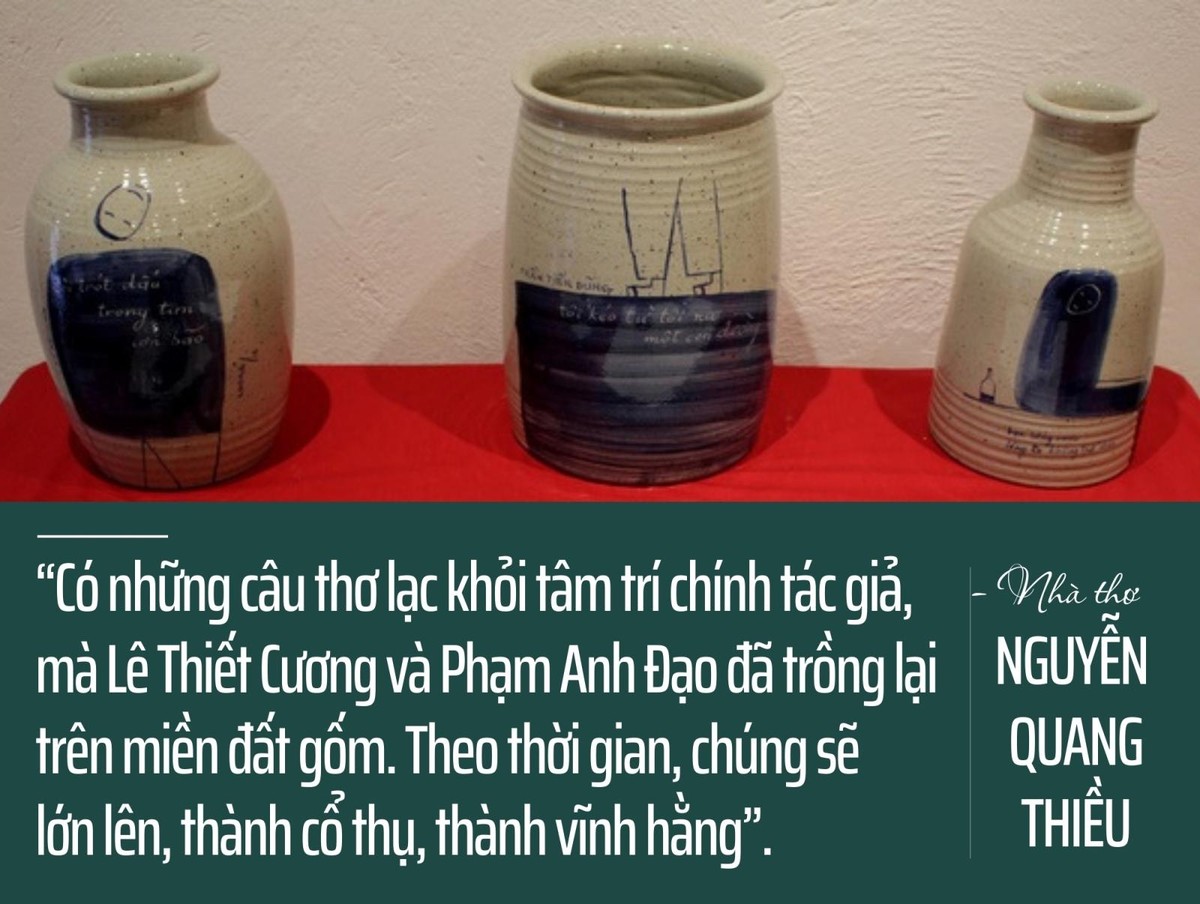 Như nhà thơ Nguyễn Quang Thiều từng thú thật: “Có những câu thơ lạc khỏi tâm trí chính tác giả, mà Lê Thiết Cương và Phạm Anh Đạo đã trồng lại chúng trên miền đất gốm. Theo thời gian, chúng sẽ lớn lên, thành cổ thụ, thành vĩnh hằng”.