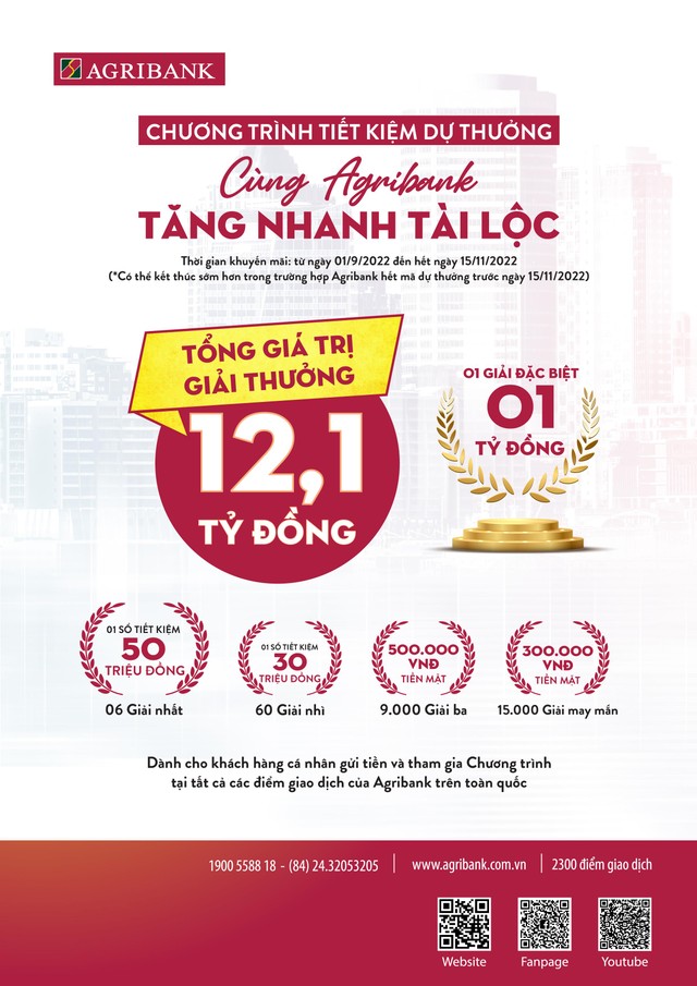 Theo đó, khách hàng gửi tiền có thể tham gia chương trình tại tất cả chi nhánh Agribank trên toàn quốc.