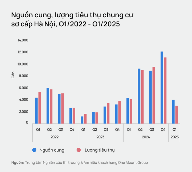 Số liệu của Hội Môi giới bất động sản Việt Nam (VARS) cho thấy, trong quý I/2025, nguồn cung nhà ở đạt 27.000 sản phẩm, tăng 33% so với cùng kỳ năm 2024. Trong đó, có 14.500 sản phẩm chào bán mới, dù chỉ bằng khoảng 1/2 quý liền trước, nhưng tăng gấp 3 so với cùng kỳ năm trước.