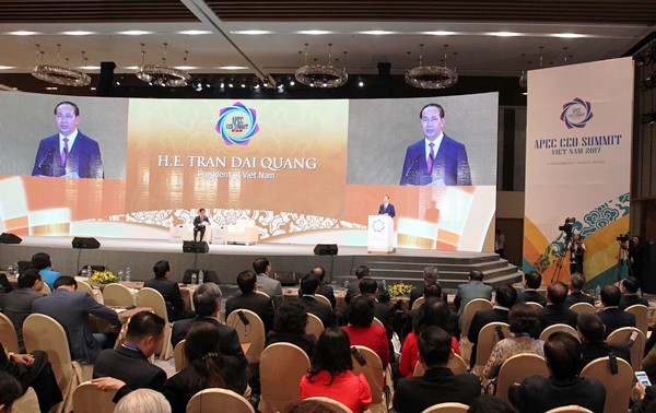 Chủ tịch nước Trần Đại Quang phát biểu trong phiên khai mạc APEC CEO Summit 2017 tại Đà Nẵng.