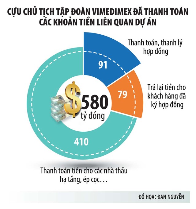 Theo cựu Chủ tịch Vimedimex, ngay sau khi xảy ra sự việc, bị cáo đã có đơn đề nghị trả lại dự án trên cho UBND TP. Hà Nội. Sau đó, Công ty Bắc Từ Liêm và UBND huyện Đông Anh đã ký biên bản bàn giao lại toàn bộ hiện trạng diện tích đất, mốc giới khu đất đã được bàn giao trước đó; đồng thời hoàn lại 580 tỷ đồng tiền phát sinh.