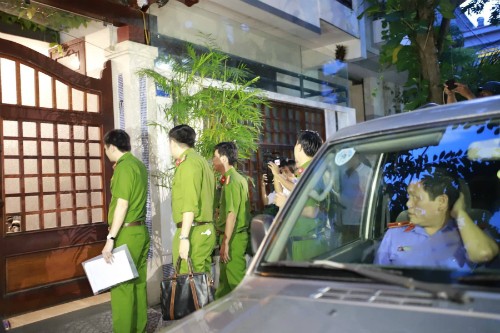 Lực lượng chức năng khám xét chỗ ở của ông Đào Tấn Bằng. Ảnh: Nguyễn Đông.