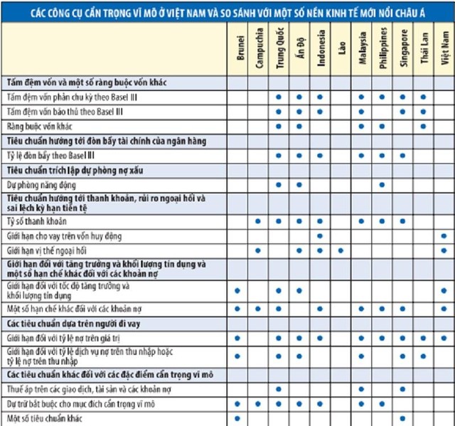 Điều lưu ý là, trong khi hầu như Việt Nam chủ yếu sử dụng “hỏa lực” hạn mức tín dụng kiểm soát tốc độ tăng trưởng tín dụng, thì Ấn Độ và Trung Quốc lại sử dụng thêm các công cụ tấm đệm vốn phản chu kỳ, tấm đệm vốn bảo thủ và khống chế đòn bẩy nợ các ngân hàng theo tiêu chuẩn Basel 3. Các nước như Thái Lan, Malaysia, Singapore, Indonesia, Philippines không kiểm soát tăng trưởng tín dụng bằng hạn mức tín dụng, mà sử dụng các giới hạn tỷ lệ khoản vay trên giá trị (căn nhà…), hoặc tỷ lệ khoản vay trên thu nhập của người đi vay. Nhiều nghiên cứu cho thấy, việc sử dụng các công cụ này có hiệu quả đáng kể trong việc khống chế tốc độ tăng trưởng tín dụng.
