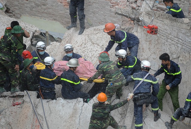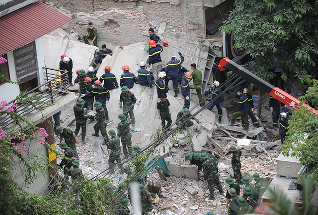 (ĐTCK) Khoảng 200 người đã tham gia cứu hộ tại hiện trường ngôi nhà bị sập số 43 Cửa Bắc rạng sáng nay. Đến giữa trưa, nạn nhân cuối cùng đã được đưa ra khỏi đống đổ nát.