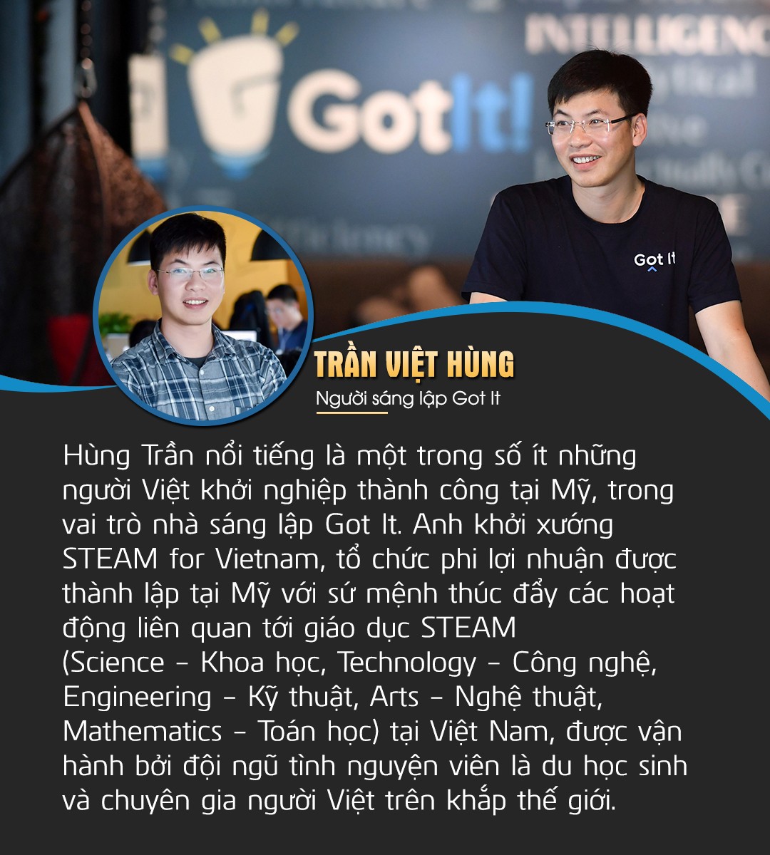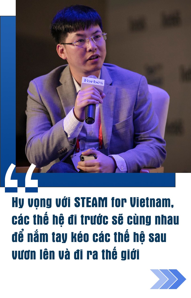 Tôi đã cùng rất nhiều người Việt trẻ và tài giỏi ở khắp nơi trên thế giới lập ra tổ chức phi lợi nhuận STEAM for Vietnam với ước muốn là mang giáo dục STEAM đẳng cấp quốc tế về cho người Việt một cách hoàn toàn miễn phí. Hy vọng là qua chương trình này, các thế hệ đi trước sẽ cùng nhau để nắm tay kéo các thế hệ sau vươn lên và đi ra thế giới.