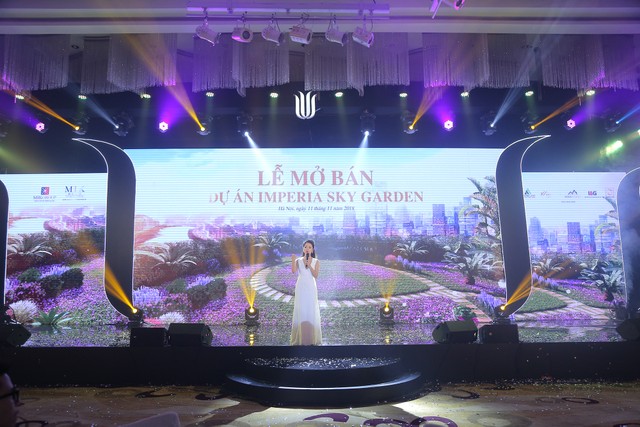 Tham dự Lễ mở bán dự án Imperia Sky Garden, hàng ngàn khách hàng còn được giao lưu với ca sĩ khách mời Phương Linh. Những ca khúc nổi tiếng được ca sĩ Phương Linh thể hiện lại càng làm không khí khán phòng vốn đã rất “nóng” lại càng trở nên sôi động và náo nhiệt hơn.