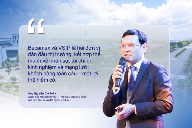 Becamex và VSIP thuộc cùng hệ sinh thái nhà phát triển công nghiệp hàng đầu Việt Nam. VSIP là biểu tượng hợp tác thành công giữa Singapore và Việt Nam, với hai cổ đông sáng lập là Becamex và Sembcorp đã đồng hành hơn 29 năm qua. Các chiến lược phát triển của hai bên được hoạch định hài hòa, bổ trợ cho nhau.
