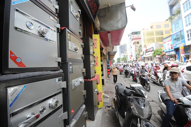 (ĐTCK) Chủ cửa hàng két sắt trên phố Tây Sơn cho biết, từ đầu tháng 8 đến nay, trung bình mỗi ngày bán được 5 sản phẩm, tiếp khách suốt ngày.