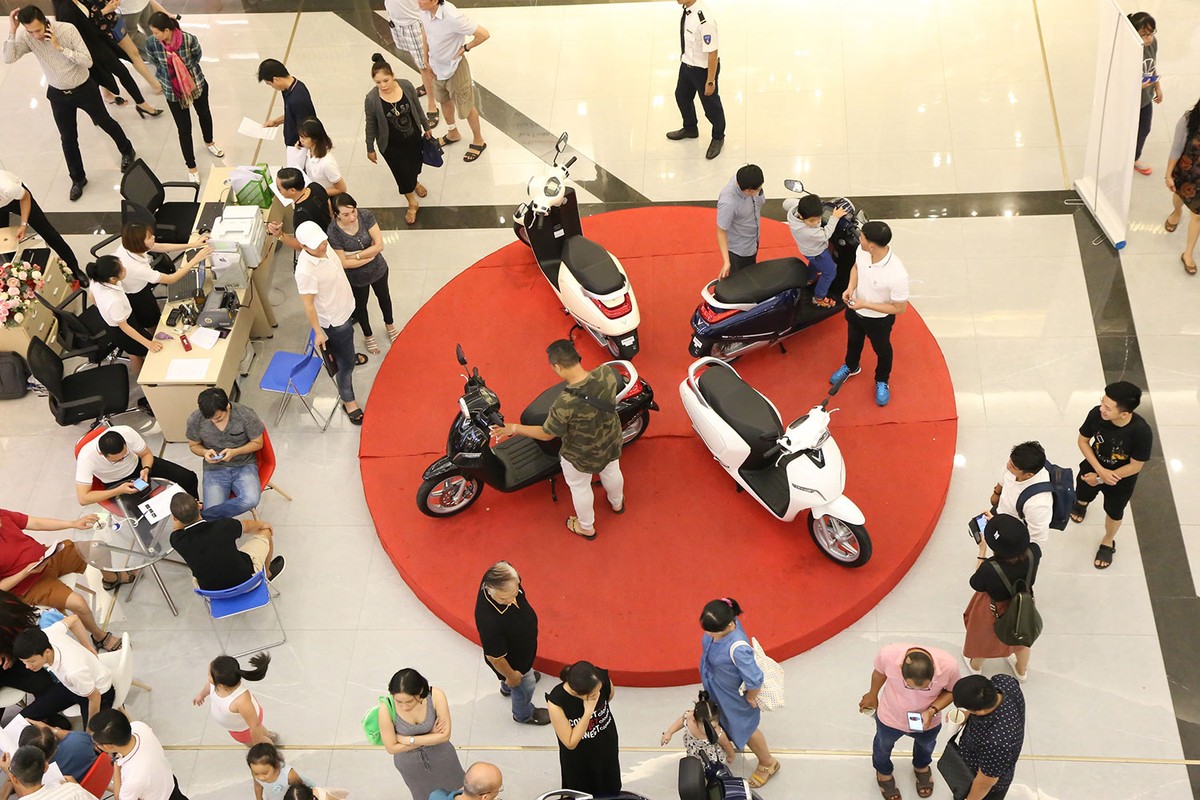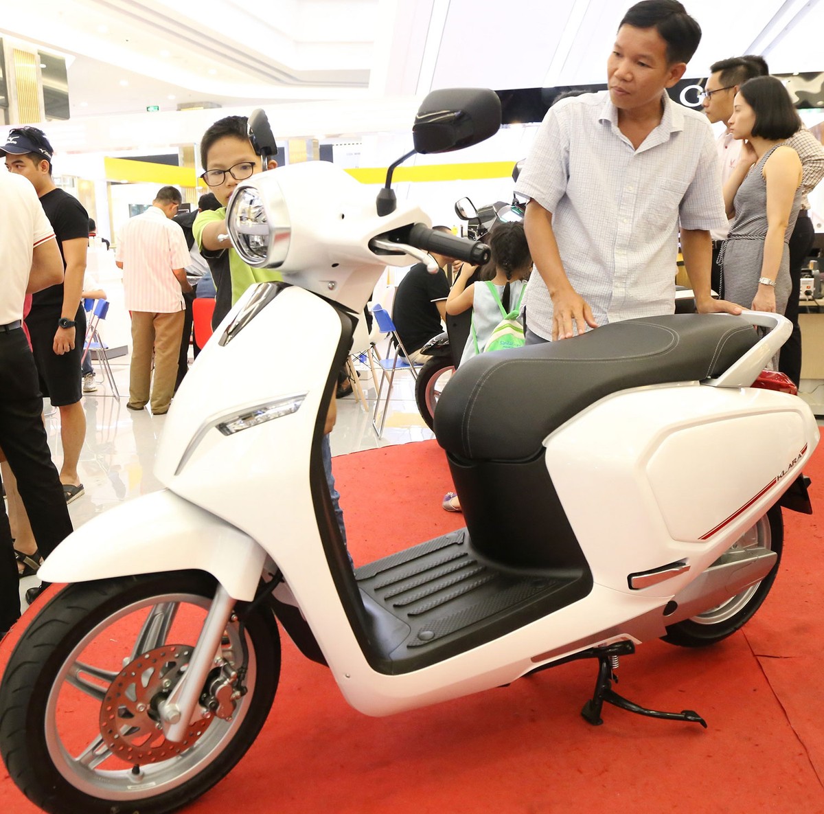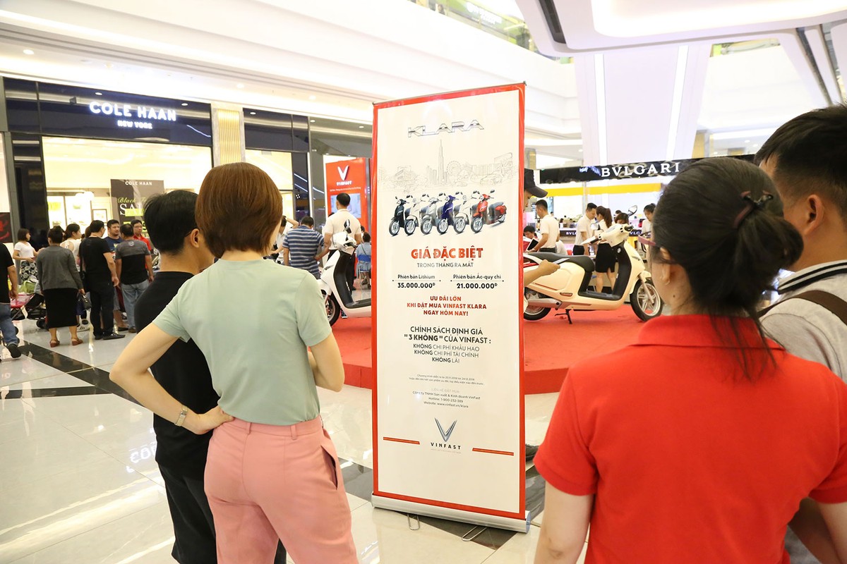 Người dân TP.HCM chỉ có thể xem những chiếc xe máy Vinfast Klara.