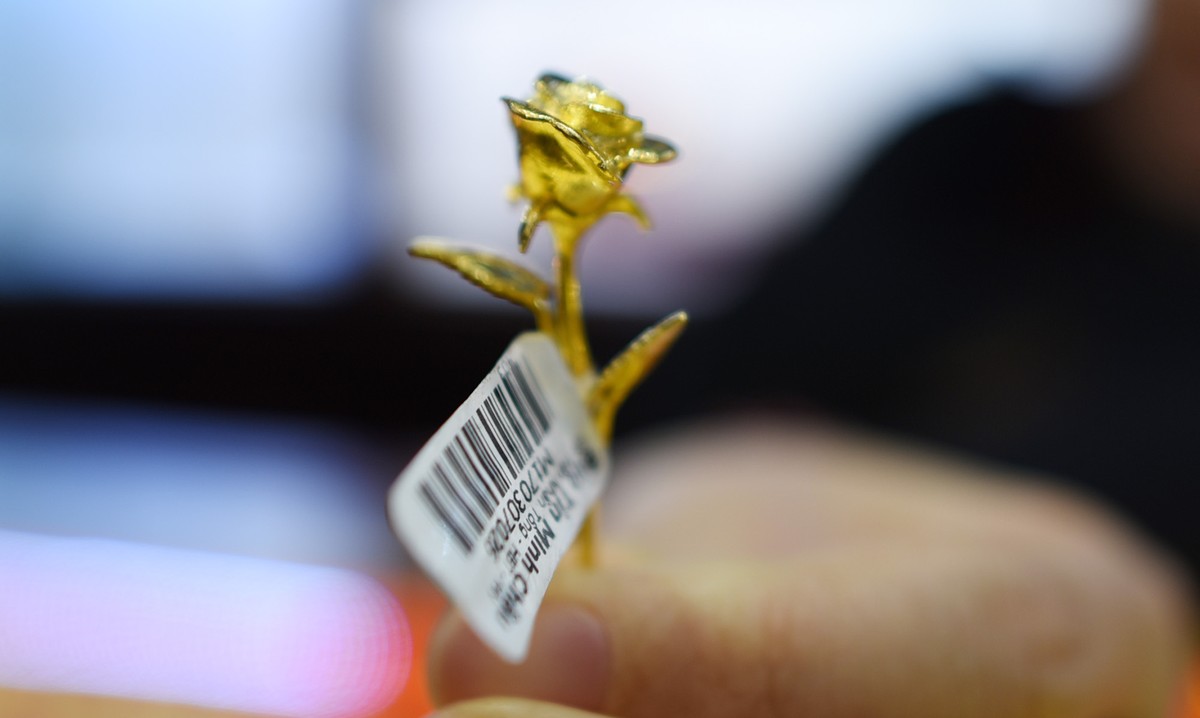 Ngoài ra, ngày Thần Tài năm nay trùng với ngày Lễ Tình nhân (Valentine) 14/2, nên các sản phẩm như bông hồng vàng 2 chỉ cũng bán chạy không kém.