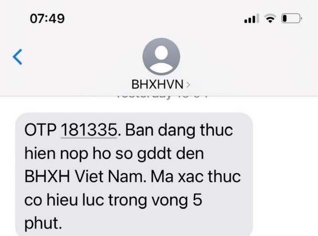 Bước 4: BHXH Việt Nam sẽ gửi mã OTP về số điện thoại của người hưởng.