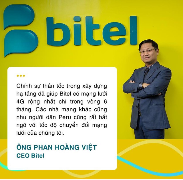 Chính sự thần tốc đó đã giúp Bitel có mạng lưới 4G rộng nhất chỉ trong vòng 6 tháng. Các nhà mạng khác cũng như người dân Peru cũng rất bất ngờ với tốc độ chuyển đổi mạng lưới của chúng tôi.