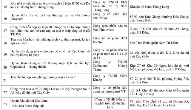 (ĐTCK)  Sở Xây dựng Hà Nội công bố danh sách 23 dự án nhà ở cho phép tổ chức, cá nhân nước ngoài được sở hữu.