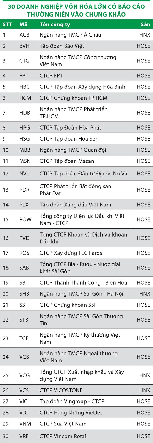 * Danh sách doanh nghiệp xếp theo thứ tự ABC của mã chứng khoán, không phải thứ tự xếp hạng