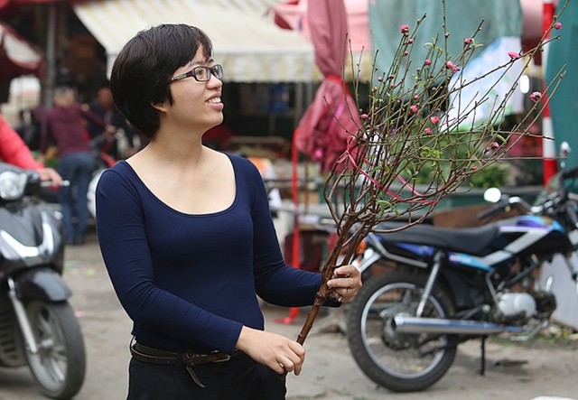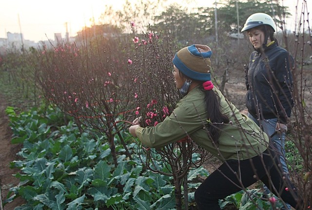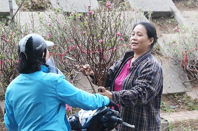 Những cành hoa đào nở sớm được đưa ra chợ phục vụ thú chơi hoa của người dân Thủ đô.
