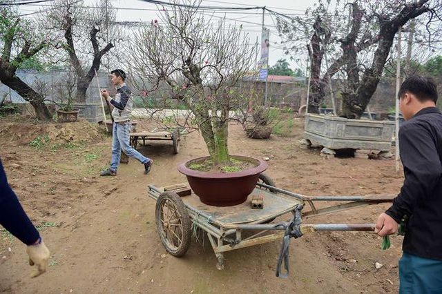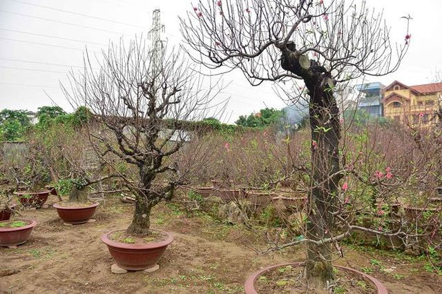 Những gốc đào cổ thụ có độ tuổi trên 40 năm ở vườn Nhật Tân, quận Tây Hồ (Hà Nội) với nhiều dáng khác nhau có giá hàng trăm triệu đồng chuẩn bị xuống phố 'chờ đón' đại gia sắm chơi Tết.