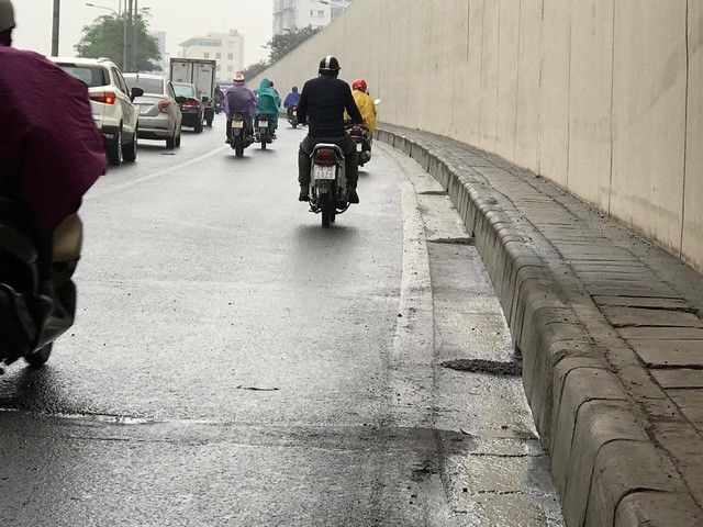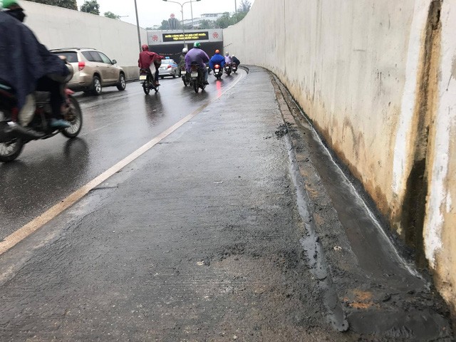 Sau sự cố hàng chục xe máy đổ la liệt ở hầm chui Kim Liên (Hà Nội) hôm qua 7/12, đến sáng nay 8/12, đơn vị quản lý hầm chui Kim Liên đã hoàn thành việc đặt biển cảnh báo và làm các công tác khắc phục trơn trượt, ngăn nước mưa, nước thải chảy tràn trong hầm.
