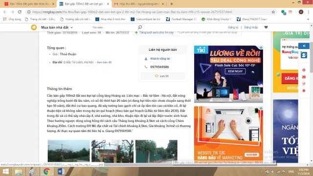 Đăng nội dung cần mua đất không giấy tờ trên một website rao vặt bất động sản, phóng viên Đầu tư Bất động sản ngay lập tức được giới thiệu về một mảnh đất xen kẹt tại Bắc Từ Liêm không có địa chỉ cụ thể rộng 55m2, mặt tiền 4m, mặt ngõ 2m, giá bán 700 triệu đồng, giấy tờ mua bán viết tay…