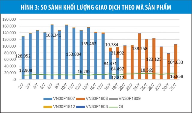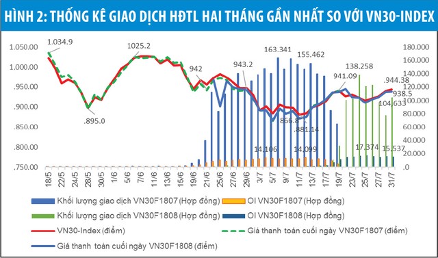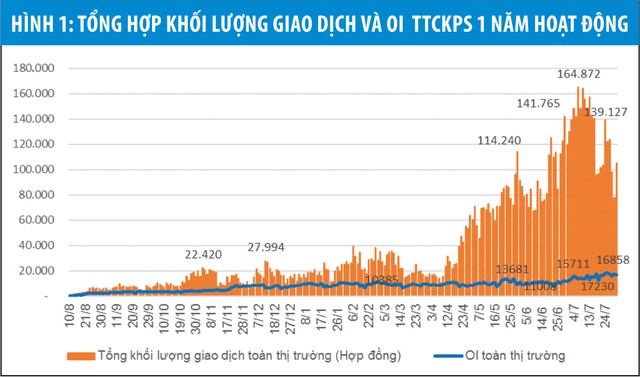 Khối lượng vị thế mở OI toàn thị trường tăng trưởng suốt từ khi thị trường đi vào hoạt động đến nay và đạt 16.858 hợp đồng tại ngày 31/7/2018, gấp 2,1 lần so với cuối năm 2017. Ngày 25/7/2018 khối lượng vị thế mở OI đạt giá trị cao nhất 18.569 hợp đồng. Điều đó cho thấy sức hấp dẫn và sự quan tâm của nhà đầu tư đối với TTCKPS ngày càng tăng lên.