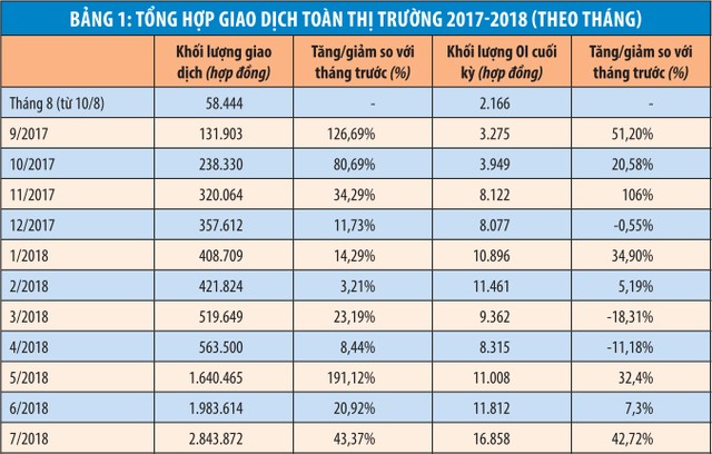 Số lượng tài khoản giao dịch phái sinh mới liên tục tăng, trung bình mỗi ngày có 153 tài khoản mới. Tính đến ngày 31/7/2018, đã có 39.631 tài khoản giao dịch phái sinh được mở, trong đó số tài khoản có giao dịch là 11.225 tài khoản.