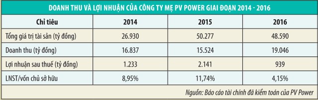 Theo ông Nguyễn Xuân Hòa, Tổng giám đốc PV Power, trong năm 2017, sản lượng điện của Tổng công ty đạt 20,581 tỷ KWh, vượt 481 triệu KWh (vượt 2,4%) so với kế hoạch Bộ Công thương giao; doanh thu toàn Tổng công ty ước đạt 30.987 tỷ đồng, lợi nhuận trước thuế ước đạt 2.503 tỷ đồng.
