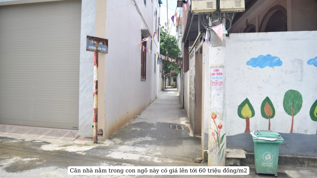 Tiếp tục tìm hiểu quanh địa bàn xã, phóng viên được biết, cách căn nhà có giá 60 triệu đồng/m2 khoảng 500 m, một ngôi nhà khác tại thôn Tiền Lệ, có ngõ ô tô đỗ cửa, lại chỉ được bán với giá hơn 50 triệu đồng/m2 trong đợt hè vừa qua.