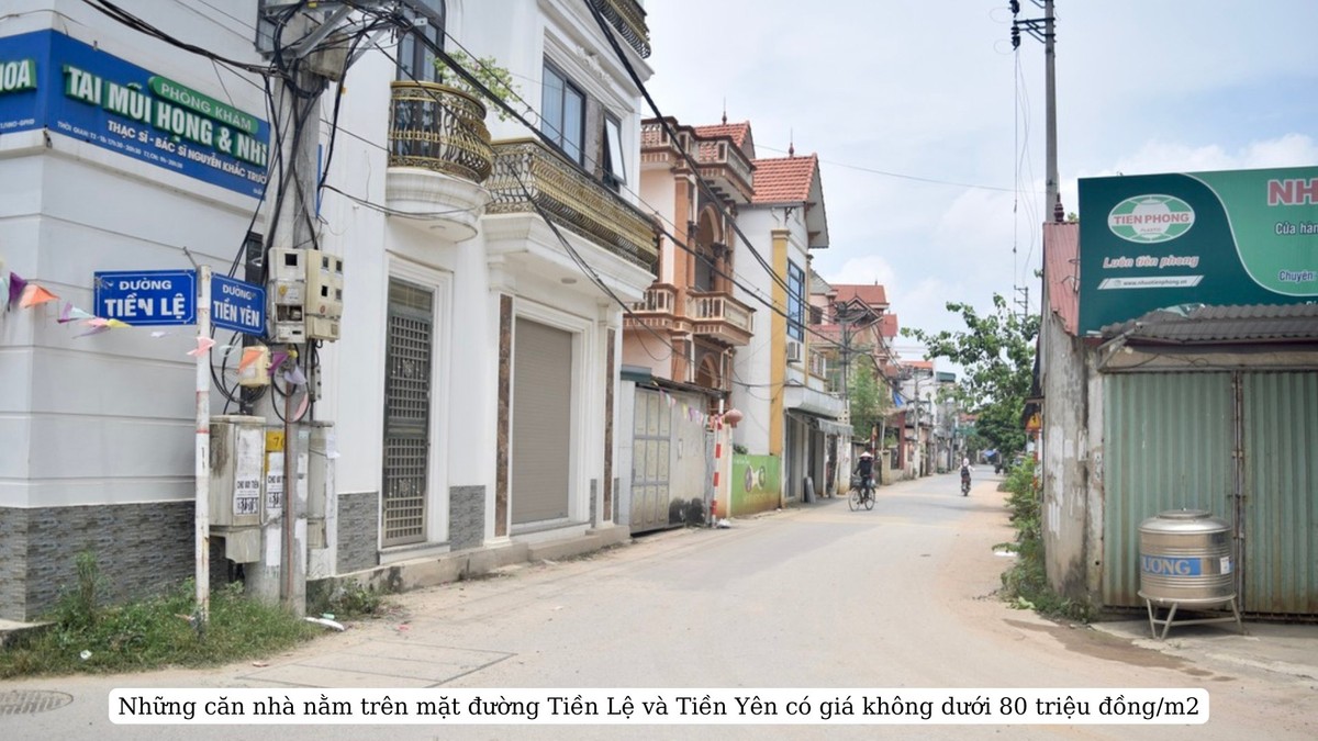 “Nhà thổ cư có mặt tiền đẹp, nằm trên mặt đường Tiền Yên và Tiền Lệ sẽ không còn giá dưới 80 triệu đồng/m2 trong thời điểm hiện tại. Chỉ những căn nhà có ngõ khoảng 2,5 m mới có mức giá 30 triệu đồng/m2” - đây là lời khẳng định của nhiều hộ dân sau hiệu ứng từ buổi đấu giá đình đám vừa qua.