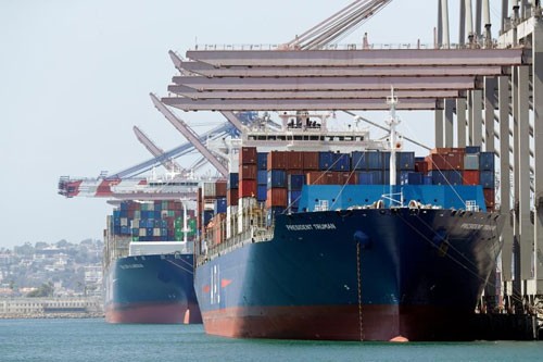 Tàu chở hàng nhập khẩu tại cảng Long Beach, California, Mỹ. Ảnh: AP.