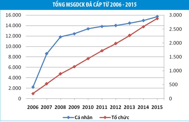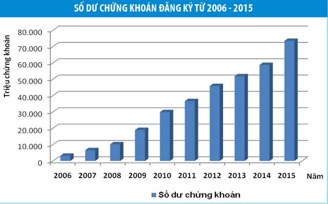 -Số lượng tổ chức đăng ký chứng khoán tại VSD năm 2006 chỉ là 44, đến nay đã lên đến 1.308 tổ chức, tăng 29,7 lần