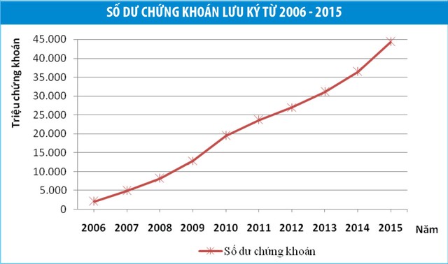 -Số chứng khoán lưu ký tại VSD là 51 tỷ chứng khoán tăng 24,5 lần so với năm 2006