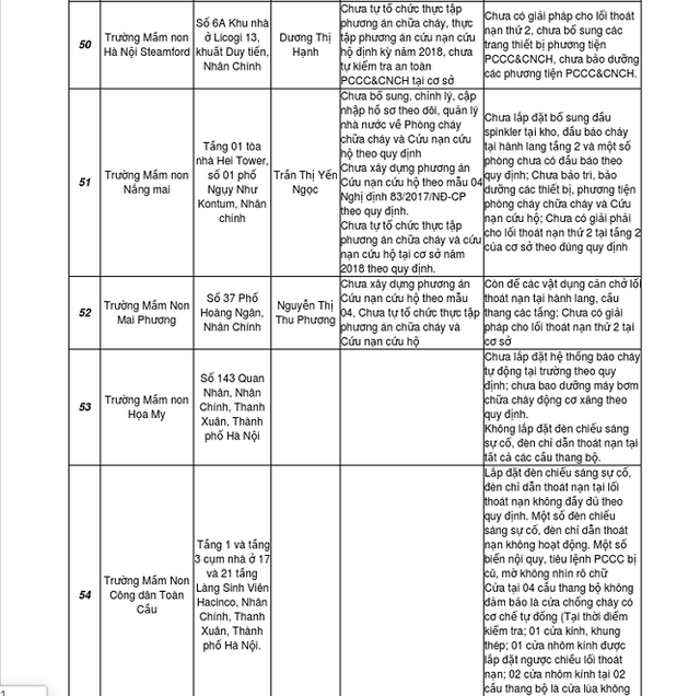 Ngoài ra, hàng loạt chung cư mini, trường học, trung tâm thương mại... cũng bị bêu tên vi phạm về PCCC.