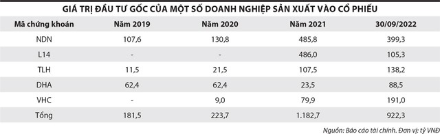 Giai đoạn 2020 - 2021, thị trường chứng khoán thu hút sự tham gia của nhiều doanh nghiệp sản xuất. Không thể phủ nhận, giai đoạn thị trường một mạch đi lên, cổ phiếu nào cũng tăng giá mạnh, những doanh nghiệp có nguồn tiền nhàn rỗi tranh thủ đầu tư cổ phiếu cũng kiếm lời kha khá. Nhiều doanh nghiệp thoát lỗ hoặc báo lãi đột biến nhờ hoạt động này. Tuy nhiên, sang năm 2022, tình hình đã thay đổi khi thị trường đi xuống.