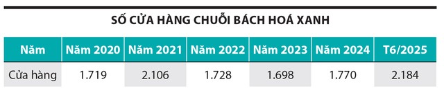 Đến cuối tháng 6/2025, Bách Hoá Xanh có 2.184 cửa hàng - nhiều nhất trong hệ thống. Dù đã có lãi từ năm 2024 và nửa đầu năm 2025, chuỗi vẫn ghi nhận lỗ luỹ kế 6.918 tỷ đồng, chủ yếu phát sinh trong giai đoạn 2020 - 2023.