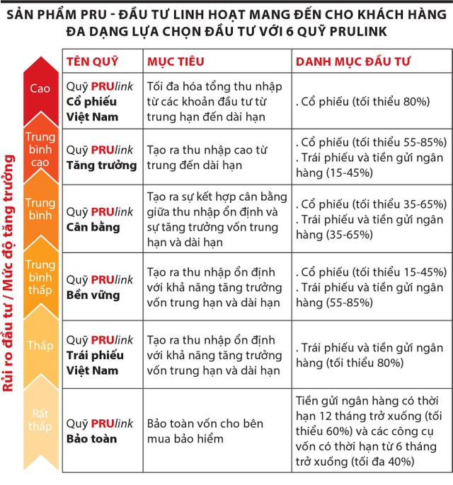 Tương tự, khách hàng đang lựa chọn Quỹ PRUlink Cân bằng có thể cân nhắc giảm xuống một bậc là Quỹ PRUlink Bền vững.