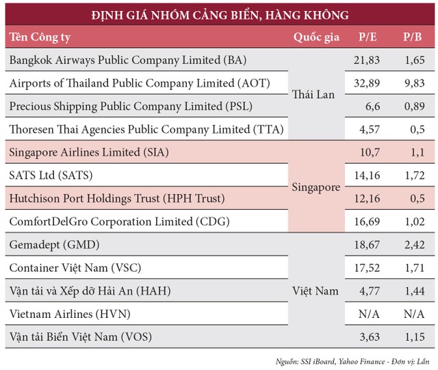 Đối với doanh nghiệp cảng biển như CTCP Gemadept (mã GMD), CTCP Container Việt Nam (mã VSC)…, định giá đang tương đương so với khu vực nhưng có dư địa tăng trưởng nhờ sản lượng thông quan tăng và kỳ vọng cải thiện được giá dịch vụ, sẽ tăng hấp dẫn định giá so với các doanh nghiệp trong khu vực.