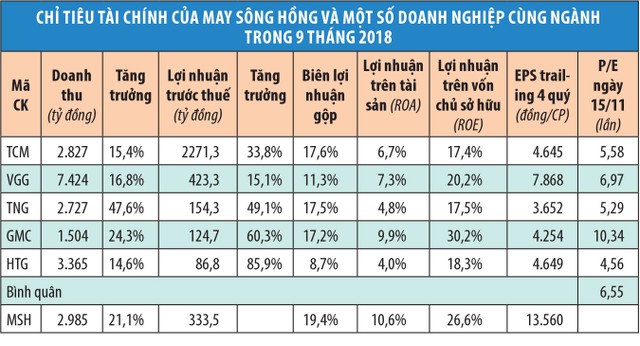 So với các doanh nghiệp dệt may đang giao dịch trên sàn chứng khoán, quy mô doanh thu, tỷ lệ ROE, ROA của May Sông Hồng hiện thuộc nhóm cao nhất.