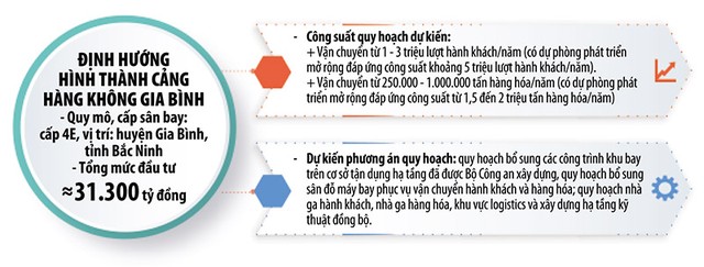 Theo đó, UBND tỉnh Bắc Ninh đề nghị người đứng đầu Chính phủ xem xét chấp thuận cập nhật, bổ sung Cảng hàng không Gia Bình vào Quy hoạch Tổng thể phát triển hệ thống cảng hàng không, sân bay toàn quốc thời kỳ 2021 - 2030, tầm nhìn đến năm 2050. UBND tỉnh Bắc Ninh đồng thời kiến nghị cấp có thẩm quyền giao địa phương này phối hợp với Bộ Công an triển khai các thủ tục đầu tư dự án theo quy định của pháp luật.