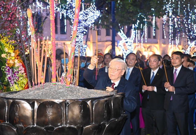Trong không khí cả nước vui tươi, phấn khởi đón chào Năm mới Tân Sửu 2021, kỷ niệm 91 năm ngày thành lập Đảng Cộng sản Việt Nam (3/2/1930-3/2/2021) và thành công của Đại hội XIII của Đảng, tối 30 Tết (ngày 11/2), Tổng Bí thư, Chủ tịch nước Nguyễn Phú Trọng đã đến dâng hương Tượng đài Vua Lý Thái Tổ tại Vườn hoa Lý Thái Tổ, tưởng nhớ công ơn các vị tiên hiền, tiên liệt, các liệt tổ, liệt tông đã dày công xây dựng và bảo vệ non sông đất nước, để con cháu ngày nay được chung hưởng thái bình, độc lập, tự do.