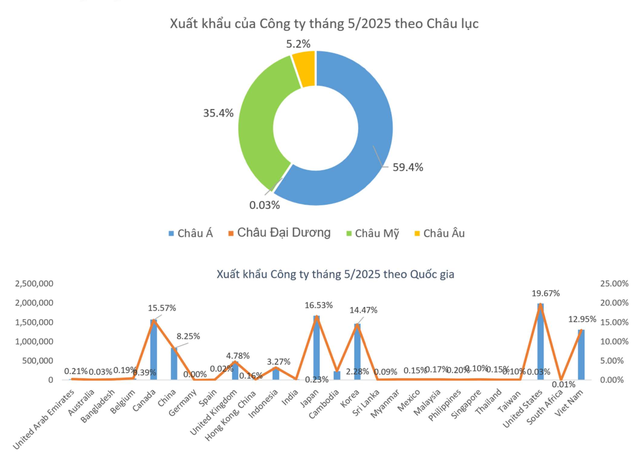 Lũy kế 5 tháng đầu năm 2025, doanh thu của Công ty đạt 1.607,5 tỷ đồng, tăng 7% so với cùng kỳ, hoàn thành khoảng 36% kế hoạch năm. Lợi nhuận sau thuế đạt 138,7 tỷ đồng, tăng 25% và hoàn thành xấp xỉ 50% kế hoạch năm.