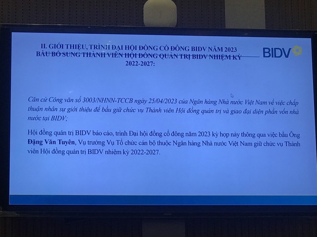 Gương mặt đáng chú ý được bầu bổ sung vào HĐQT BIDV nhiệm kỳ 2022-2027 là ông Đặng Văn Tuyên, Vụ trưởng Vụ Tổ chức cán bộ thuộc NHNN giữ chức vụ thành viên.