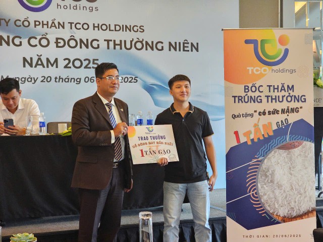 Kết thúc đại hội, 27 cổ đông tham dự được bốc thăm ngẫu nhiên. Người may mắn nhất là cổ đông mang số 35 – một nhà đầu tư trẻ 25 tuổi đã ẵm trọn 1 tấn gạo từ TCO Holdings.