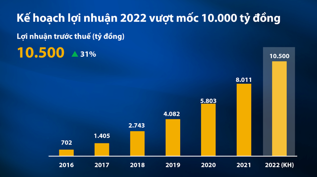 Riêng năm 2022, các chỉ tiêu tăng trưởng chính về tổng tài sản, quy mô tín dụng, huy động và lợi nhuận trước thuế được VIB dự kiến tăng từ 30% trở lên.