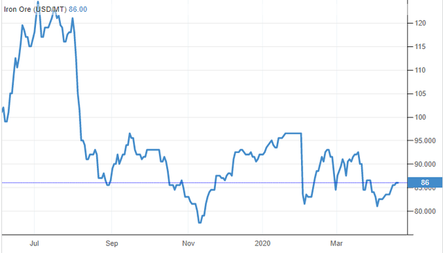 Diễn biến giá quặng sắt tính tới 21/4/2020