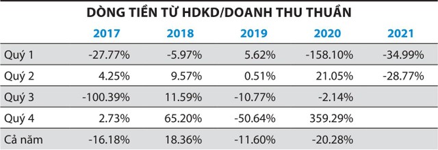 Dòng tiền kinh doanh âm nặng kể từ 2015 trở lại đây một mặt thể hiện việc DIC Corp đang đẩy mạnh hoạt động đầu tư nhằm tận dụng lợi thế từ các quỹ đất sẵn có, nhưng mặt khác cũng đặt ra quan ngại về khả năng tạo tiền từ hoạt động kinh doanh thuần của doanh nghiệp.