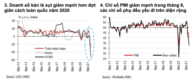 Theo báo cáo của HSBC, mặc dù Việt Nam đã áp dụng các biện pháp giãn cách nghiêm ngặt tại các thành phố lớn, biến chủng Delta vẫn tiếp tục bùng phát lây lan trong tháng 8. Số ca mắc mới liên tục tăng trên 10.000 ca mỗi ngày kể từ 19/8 khiến tổng số ca trong tháng tăng gấp ba lần.