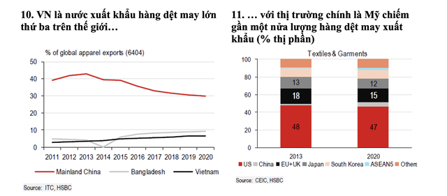 Báo cáo của HSBC cho biết, thị phần của ngành da giày Việt Nam trên thế giới đang chiếm 15%, tăng gấp đôi trong vòng 10 năm trở lại đây bất chấp vị thế thống lĩnh của Trung Quốc đại lục với 30% thị phần. Trong bối cảnh mùa lễ hội sắp đến ở các nước phương Tây, người tiêu dùng tại Mỹ và châu Âu sẽ ngày càng thấy rõ được tác động của đại dịch.