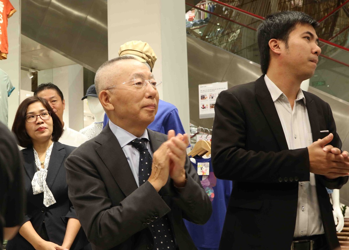 Đích thân ông Tadashi Yanai Chủ tịch HĐQT kiêm Giám đốc điều hành tập đoàn Fast Retailing chủ thương hiệu Uniqlo đón từng khách hàng vào mua sắm.