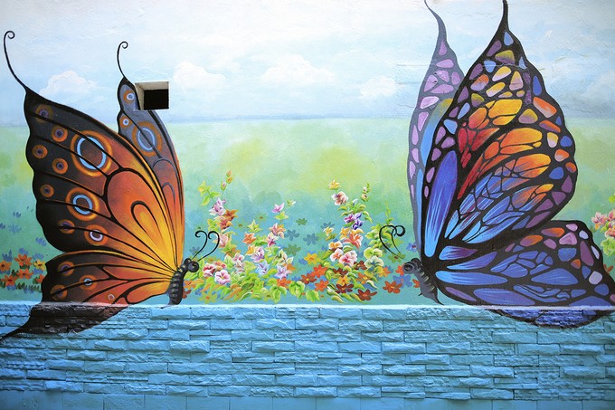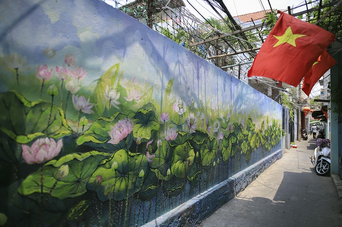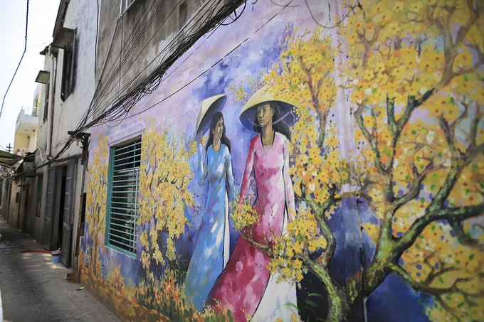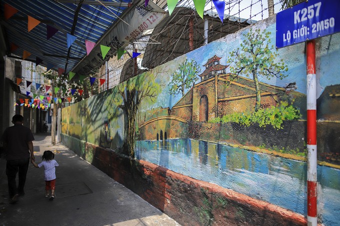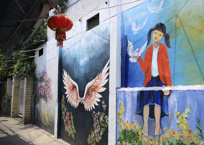 Những bức tường vốn cũ kỹ trong con hẻm, giờ đã "khoác" lên những bức tranh sinh động. Đây là làng bích họa đầu tiên của Đà Nẵng. Dự án xuất phát từ ý tưởng của chị Dương Huỳnh Trang - Bí thư Đoàn phường Phước Ninh (quận Hải Châu).